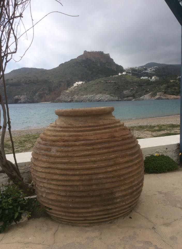 Παλαιότερα πολλά από αυτά τα παμπάλαια πιθάρια προερχόμενα από τις αποθήκες του Ξανθάκη στο Καψάλι και του εμπόρου Μανούσου Νικηφοράκη στη τη Χώρα στόλιζαν τον παραλιακό δρόμο του Καψαλιού.