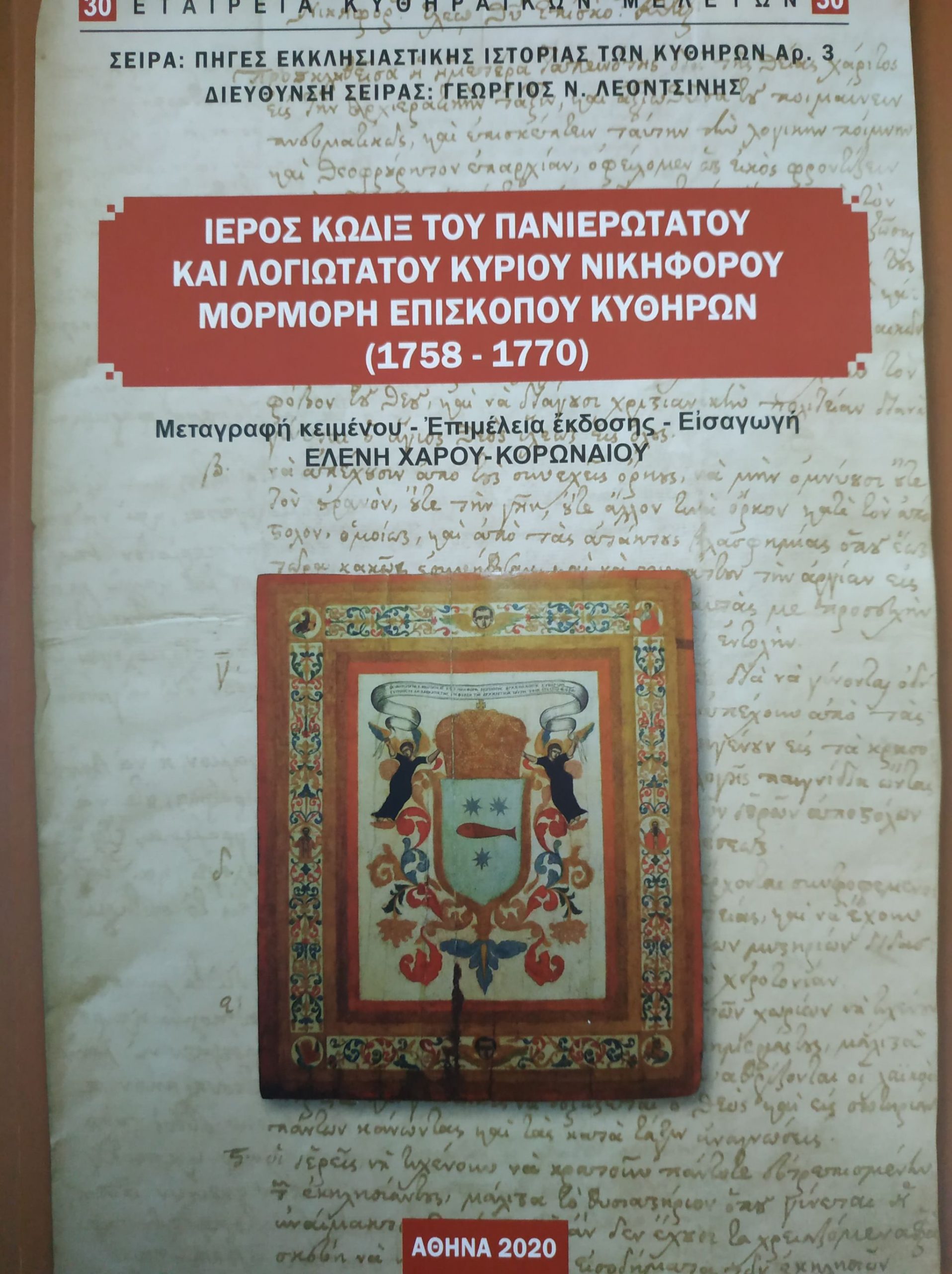 Οι κώδικες των Ιεραρχών της Επισκοπής Κυθήρων που διασωθήκανε, είναι ένας θησαυρός για να μελετήσομε τη ζωή στα Κύθηρα επί Βενετοκρατίας και Αγγλοκρατίας, θεσμούς και θρησκευτικά έθιμα, ναούς, μονές, τοπωνύμια , εκλαμπρότατους άρχοντες, αξιωματούχους, τα ήθη, τις σχέσεις εκκλησίας και κοσμικής εξουσίας, κ.α.