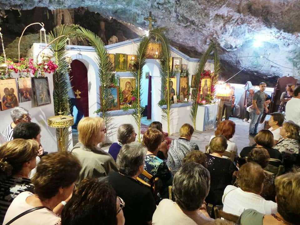 Μετά το πέρας της θείας λειτουργίας παρετέθη σε όλους τους προσκυνητές από την οικογένεια Σωτήρχου πλούσιο πρόγευμα, που όλοι απόλαυσαν σ΄αυτό το υπέροχο δημιούργημα της φύσης, μέσα στο οποίο οι ευλαβείς πρόγονοι των Σωτήρχων δημιούργησαν  με πολύ προσεκτικές παρεμβάσεις χώρο λατρείας, το μοναδικό που υπάρχει στο μικρό συνοικισμό Σπηλίες. Ο Σεβασμιώτατος τους ευχαρίστησε και τους συνεχάρη για το ενδιαφέρον τους γι αυτό το ιερό προσκύνημα, για την άρτια οργάνωση της εορτής και για το πλούσιο δείπνο στους πολυπληθείς προσκυνητές, που όπως είπε θυμίζει την «αγάπη» των πρώτων χριστιανικών χρόνων.