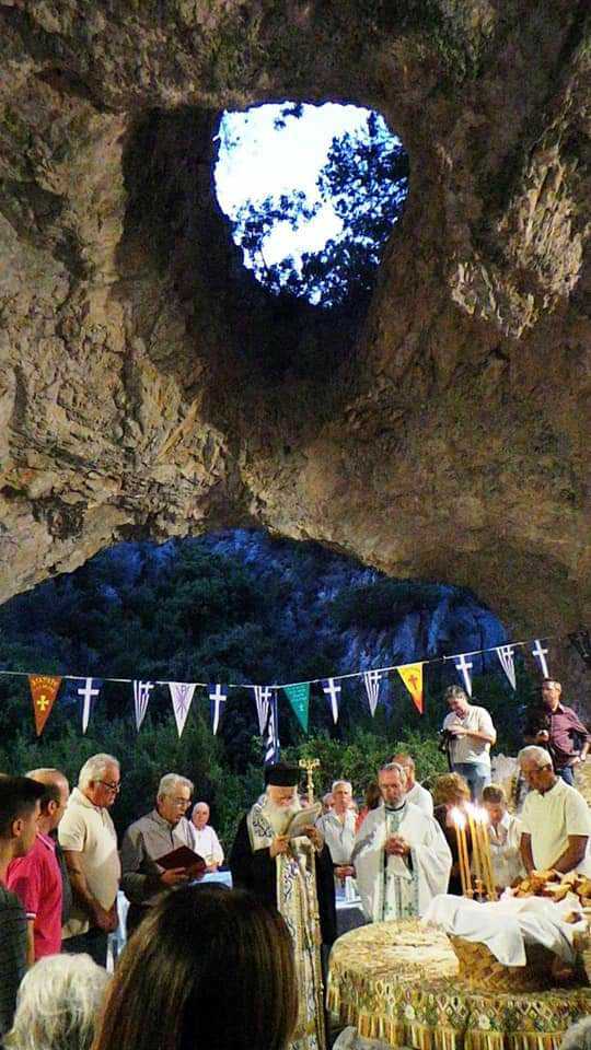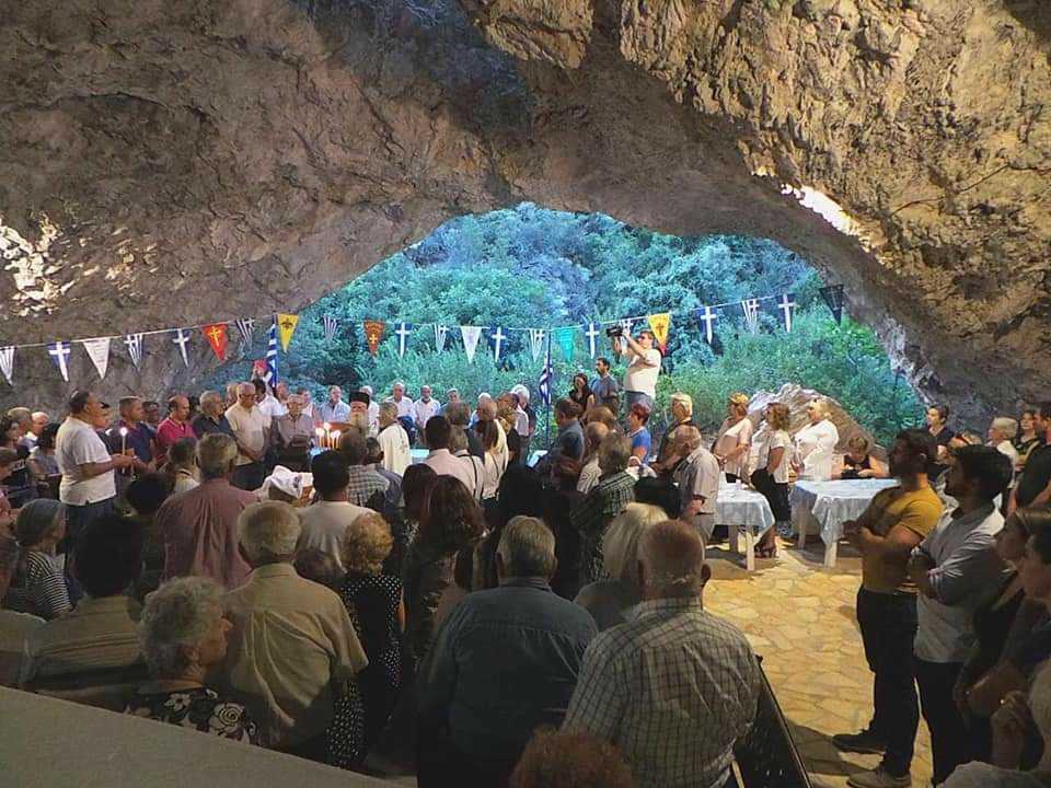 Μετά το πέρας της θείας λειτουργίας παρετέθη σε όλους τους προσκυνητές από την οικογένεια Σωτήρχου πλούσιο πρόγευμα, που όλοι απόλαυσαν σ΄αυτό το υπέροχο δημιούργημα της φύσης, μέσα στο οποίο οι ευλαβείς πρόγονοι των Σωτήρχων δημιούργησαν  με πολύ προσεκτικές παρεμβάσεις χώρο λατρείας, το μοναδικό που υπάρχει στο μικρό συνοικισμό Σπηλίες. Ο Σεβασμιώτατος τους ευχαρίστησε και τους συνεχάρη για το ενδιαφέρον τους γι αυτό το ιερό προσκύνημα, για την άρτια οργάνωση της εορτής και για το πλούσιο δείπνο στους πολυπληθείς προσκυνητές, που όπως είπε θυμίζει την «αγάπη» των πρώτων χριστιανικών χρόνων.