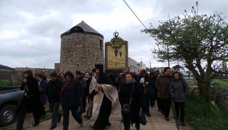 Mε αυτή τη διαταγή η εικόνα λιτανεύει από τα Μυρτίδια στη Χώρα, όπου παραμένει μέχρι τη Δευτέρα της Διακαινησίμου.