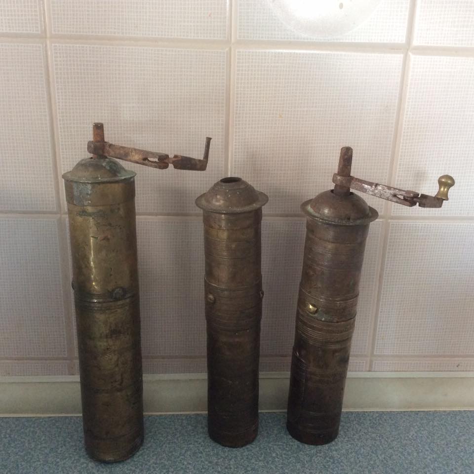 Παλιό χειροκίνητο καβουρδιστήρι και χειροκίνητοι μύλοι του καφέ στα Κύθηρα