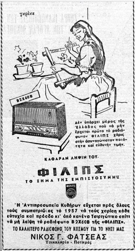 Τα πρώτα PHILIPS ραδιόφωνα έφερε στα Κύθηρα ο Νίκος Φατσέας (Νικολομάραγκος)