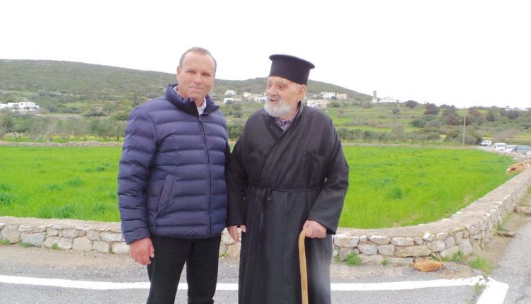 Ο ένας είναι ο ιερέας από το Δρυμώνα, κατά κόσμον Φραγκίσκος Βενέρης, ο οποίος βαδίζει ολοταχώς στο τέλος της 9ης δεκαετίας της ζωής του. Είναι συνταξιούχος βέβαια, αλλά κυκλοφορεί άνετα και επί σειράν ετών εξυπηρέτησε την ενορία της Αγίας Ελέσας και τα Φράτσια. Είναι πολύ συγκινητική η εικόνα του υπέργηρου ιερέα που περιμένει υπομονετικά στο δρόμο, απ’ όπου θα περάσει η λιτανεία της Μυρτιδιώτισσας, για να ασπασθεί την Εικόνα, προς χάριν της οποίας διήνυσε εκατοντάδες χιλιόμετρα σαν παιδί, σαν ψάλτης αργότερα και σαν ιερέας κατόπιν.