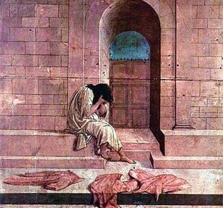 Θα καταφιλήσω τα άχραντα ποδάρια σου και θα σφουγγίσω πάλι με τα πλοκάμια της κεφαλής μου, αυτά τα ποδάρια που σαν η Εύα κατά το δειλινό τ’ άκουσε να περπατάνε από το φόβο κρύφτηκε.