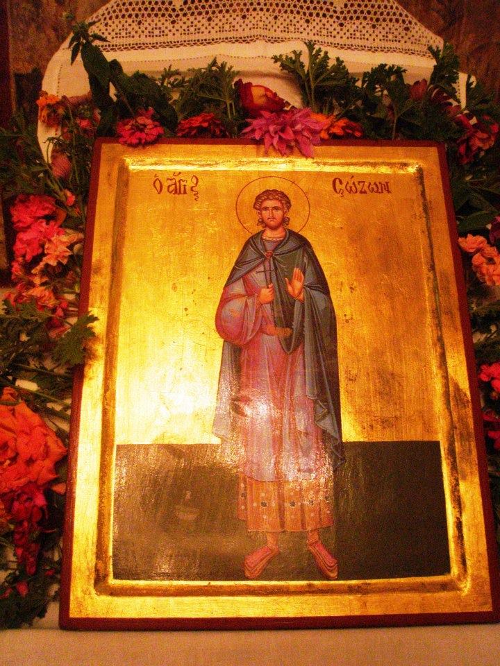 Ο ναός του αγίου είναι στην κεντρική πλατεία του χωριού και κτά το 18ο, 19ο αι. λειτουργεί σαν μια πολυάνθρωπη ενορία.Το 1749 νοικοκύρης του ναού αναφέρεται ο αφέντης Ιωάννης Δαρμάρος. Από το βαπτιστικό όνομα Σώζος στην οικογένεια επεκράτησε το παρωνύμιο οι Σωζιάνοι.