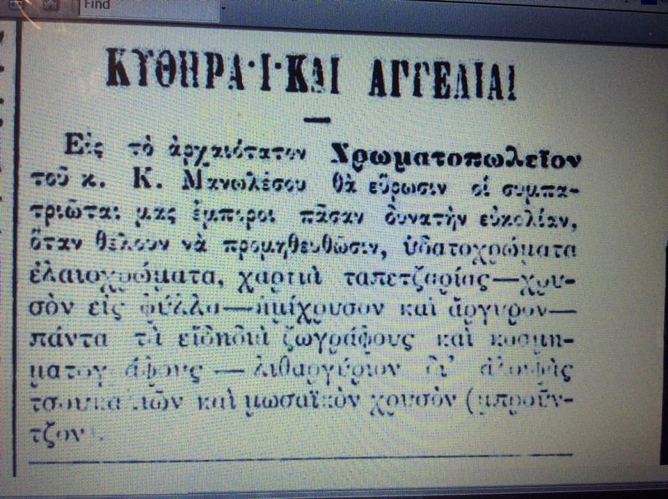 Τσιριγώτικες διαφημίσεις πριν από 120 χρόνια